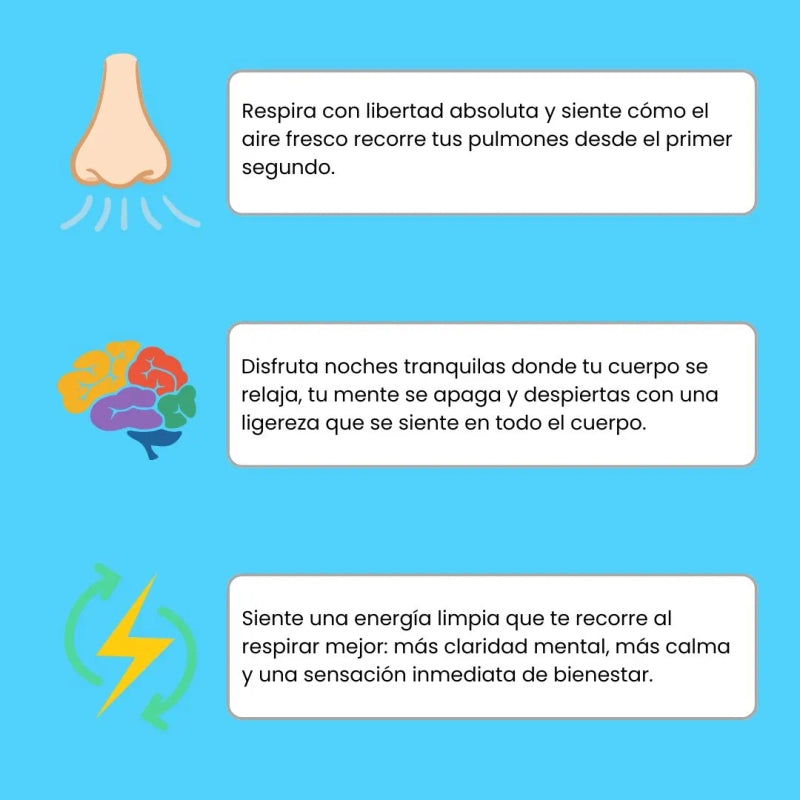 Dilata automáticamente tu flujo de aire y siente cómo el oxígeno vuelve a entrar en ti sin esfuerzo.